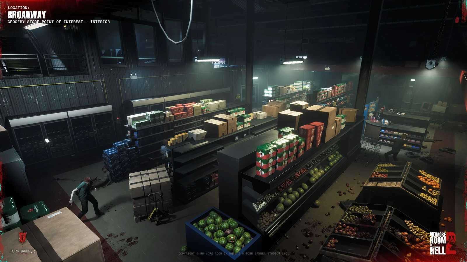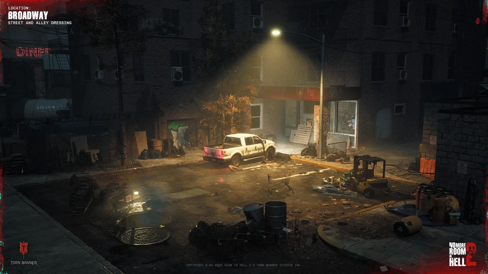 I owned a large portion of the downtown environment on the Broadway map, including three major points of interest: the grocery store, medical center, and fire station. These locations were selected at random during play to support replayability, so each needed to work as a complete gameplay space while still fitting naturally into the surrounding urban district.